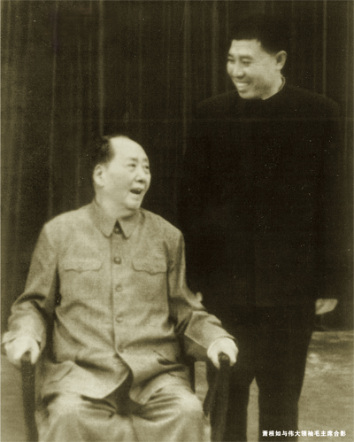 | 毛主席一年會有一至兩次來湖南,但每次都是來去匆匆。1974年10月13日,毛主席再一次回到了故鄉(xiāng)湖南。蕭根如,當時作為湖南省委接待處處長,從1960年開始就負責毛主席在湖南的衣食住行與安全警衛(wèi),先后參加接待毛主席50多次,這一次也照慣例秘密地負責接待。而這一次不同以往,毛主席來到長沙,在湖南省委接待處九所的六號樓一住就住了114天,難得地在湖南過了一次生日和元旦,直到1975年2月3日才離開,是歷次返鄉(xiāng)住得最久的一次。蕭根如清楚地記得毛主席在九所六號樓大廳接見完外賓的這一天,與外賓合完影之后,將他叫到跟前,兩人一起也合了張影。盡管之前蕭根如也曾與毛主席合過影,但那都是集體合照,這是第一次與毛主席的單獨合照,而毛主席此次離開之后再也沒回湖南,這張合影也成了肖根如最寶貴的記憶,成為蕭根如無比珍貴的回憶與寶物。 | ![]() |