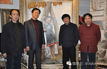 2014年3月14日晚,湖南大球泥瓷藝有限公司董事長(zhǎng)滕召華及湖南省工藝美術(shù)大師黃永平一行四人專程前往畫(huà)室拜訪了著名旅美畫(huà)家李自健先生。