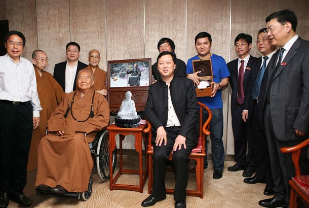 2014年11月10日上午許,在旅美畫家李自健先生的長(zhǎng)沙創(chuàng)作室,大球泥瓷藝董事長(zhǎng)滕召華親自請(qǐng)了一尊潔白如玉的《多寶佛》(釋迦牟尼佛瓷塑像)給李自健先生,并向大家介紹說(shuō),“今年初,我最開(kāi)始有用珍稀原料大球泥塑造佛像題材的想法時(shí),得到了李老師的支持。在創(chuàng)作‘釋迦牟尼佛瓷塑像’的過(guò)程中,李老師更是給了很多寶貴的意見(jiàn),他希望我們能塑造出有世界聲望的佛雕作品。在李老師的引薦下,今年5月30日,我又有幸與臺(tái)灣佛光山開(kāi)山宗長(zhǎng)星云大師結(jié)緣,并將001號(hào)‘釋迦牟尼佛瓷塑像’捐贈(zèng)給星云大師永久收藏于佛光山!