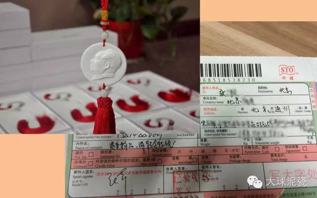 大球泥瓷藝公司發(fā)行的“金邊《毛澤東主席浮雕瓷像》、《毛澤東主席浮雕瓷像》車掛件、《毛澤東主席浮雕瓷像》小像章、《青年毛澤東主席瓷像》(橘子洲雕塑像)及《習(xí)仲勛同志瓷塑像》”形成了新的一股收藏?zé)岢!這不,公司的小伙伴們正忙著往北京快遞上百件《毛澤東主席浮雕瓷像》車掛件呢!