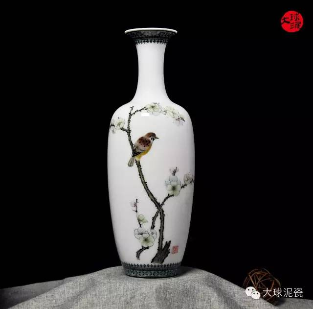《凌寒飄香》柳葉瓶,以大球泥為原材料,由省級(jí)工藝美術(shù)大師黃永平創(chuàng)作。胎體潔白細(xì)膩,釉色光滑瑩潤(rùn)。素雅的畫面質(zhì)感,美感十足。雀鳥枝頭相伴,生動(dòng)活潑,和諧美好。畫面層次分明清晰,具有較高的觀賞價(jià)值。