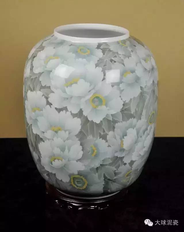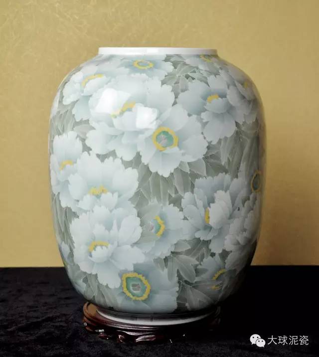 《牡丹》瓶是工藝美術(shù)大師陳楊龍先生(已故)于2006年親手繪制的作品。采用釉下五彩的工藝,器身勻稱,胎質(zhì)細膩,瓶身高40cm,收口鼓腹短足。瓶身通體繪滿牡丹,多層渲染,每一片花瓣都層次分明,清新欲滴,典雅秀麗,極富有主體感和層次感。區(qū)別于“醉顏紅”、“狀元紅”等紅色系牡丹,瓶上牡丹乃青白色花瓣,綴以淡黃花蕊,給人一種淡雅清逸、空靈雋秀的感覺。彰顯了薄如紙、白如玉、聲如磬、明如鏡的效果。與牡丹花語“生命、期待、淡淡的愛、用心付出”不謀而合,不愧是被稱為“禪在花草中”的名師佳作。