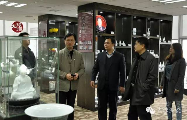 一走進(jìn)展廳,周總和張行長等人就被大球泥瓷藝創(chuàng)作的精美瓷器吸引住了眼球。雖然他們從事的是金融行業(yè)的工作,但是在陶瓷文化藝術(shù)方面也頗有自己的心得和見解。展廳內(nèi)有藝術(shù)作品近五百件,周總逐一進(jìn)行了仔細(xì)觀察,認(rèn)真聽取了大球泥瓷藝工作人員的講解,對大球泥瓷器贊不絕口,毫不吝嗇溢美之詞。
