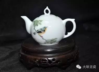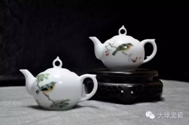 《春光美好》壺與《金秋時(shí)節(jié)》壺造型一致,色澤光潤(rùn),器型圓渾小巧,惹人垂憐。壺鈕采用圓環(huán)形設(shè)計(jì),方便提拉。圈足較低,使重心下沉,更顯大氣。鳥(niǎo)兒立于枝上,栩栩如生。整個(gè)壺做工十分精致,如玉般剔透晶瑩,讓人愛(ài)不釋手。