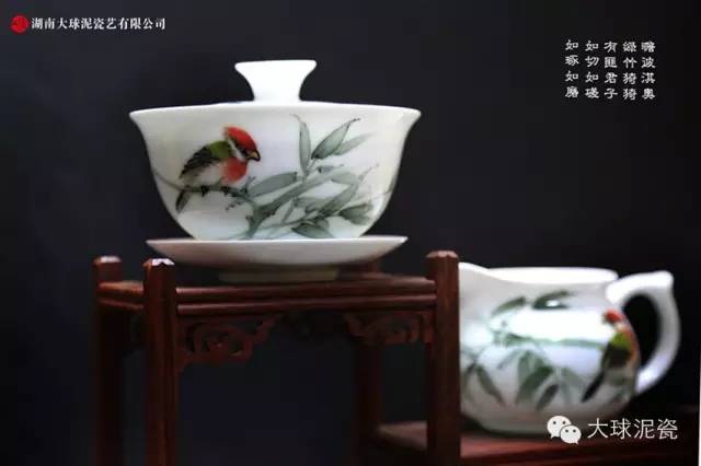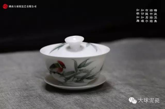 《清香》茶具以大球泥為原料燒制而成,采用釉下五彩工藝裝飾,一如既往地保持了“大球泥瓷”如羊脂玉般“晶瑩潔白、白中泛青、透光透影、溫潤如玉”的特點(diǎn)。以竹葉為素材,仿佛能讓人感覺到一股沁人心脾的味道。竹有十德,外直中通,襟懷若谷,曰虛懷;有花深埋,素面朝天,曰質(zhì)樸。與茶道中“禪茶一味,道在茶中行”的禪門藝術(shù)相呼應(yīng),有著感染靈魂的意趣,讓人在輕松和素雅中感悟到生命的精彩和豐富。