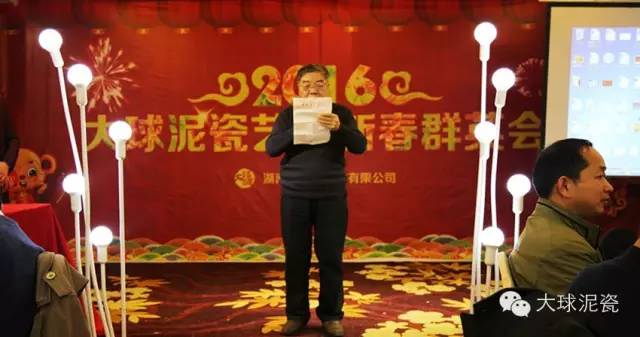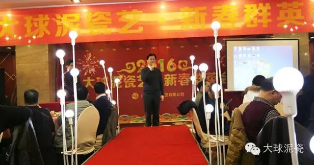 值此農(nóng)歷新年即將到來之際,大球泥瓷藝為感謝一路以來一直關(guān)心和支持我們的各位朋友,于2016年1月16日舉行《大球泥瓷藝·新春群英會(huì)》。原計(jì)劃舉辦大型新春團(tuán)拜會(huì),但考慮到大家節(jié)前忙于工作,改為舉辦“新春群英會(huì)”,邀請了部分嘉賓,有政府相關(guān)廳局領(lǐng)導(dǎo)、工藝美術(shù)大師、陶瓷收藏家、各類媒體代表和各商會(huì)會(huì)長代表等百人參加。