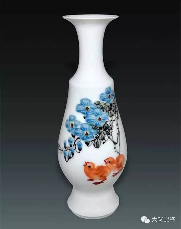 《春酣》寶塔瓶,由工藝美術(shù)大師創(chuàng)作,采用釉下五彩工藝。“雞”有“吉”的寓意,古人稱“雞”有“文、武、勇、義、信”五德。以雞雛入畫,更有初生者朝氣蓬勃之寓意。