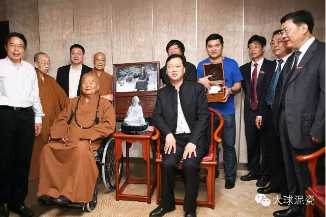 適逢星云大師九十壽辰將至,祖庭宜興大覺寺將舉行第二次供僧法會。李健老師建議大球泥瓷藝參加法會,將《坐蓮觀音》的佛光普照世人。