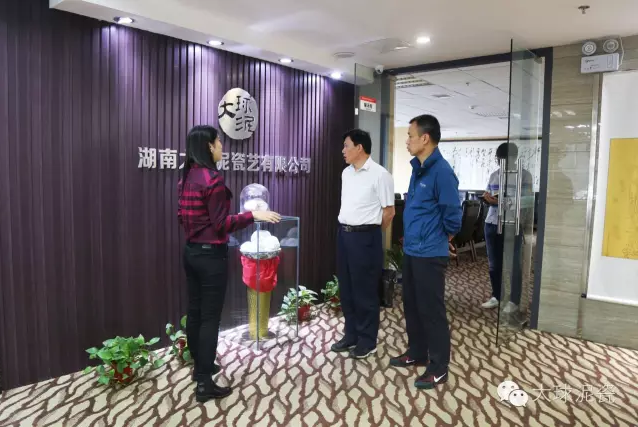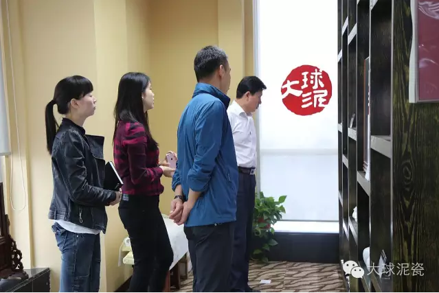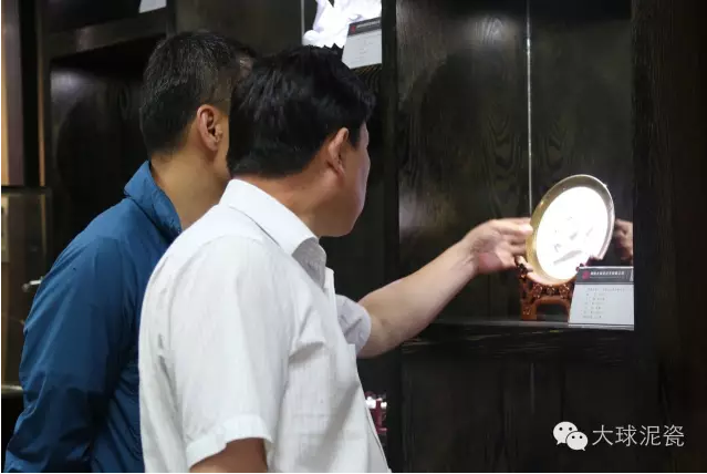 在公司工作人員陪同下,甘處長一行首先參觀了大球泥瓷精品展示廳,并詢問了大球泥原料的形成、發(fā)現(xiàn)、存量及大球泥瓷的特點,對于大球泥瓷經(jīng)典作品做了仔細(xì)鑒賞。他建議,這么珍貴的作品,每一件都要做好版權(quán)登記,取得保護(hù),防止別人來仿冒、假冒大球泥作品。