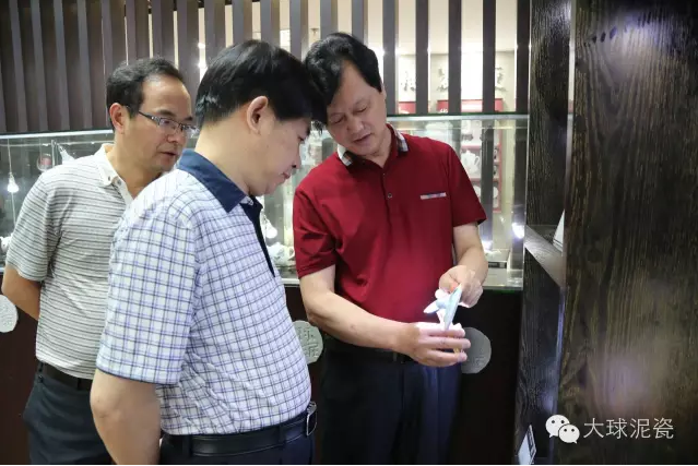 調(diào)研過程中,湯書記一行首先參觀了大球泥瓷藝精品展示廳,認(rèn)真的聽取了大球泥瓷藝董事長(zhǎng)滕召華對(duì)大球泥的形成、發(fā)現(xiàn)、使用及大球泥瓷創(chuàng)作情況的介紹。