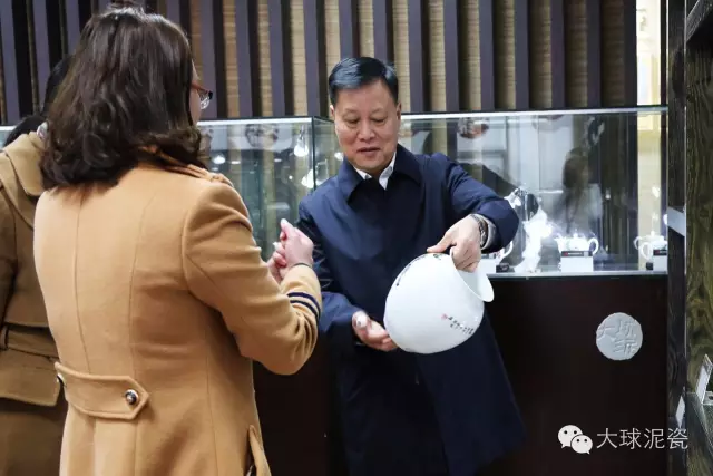 大球泥瓷藝副總經(jīng)理張萍向龍副部長詳細(xì)介紹了大球泥的形成、開采、存世量以及大球泥瓷獨有的99道制作工藝流程。龍副部長笑著說:“抽時間一定到大球泥瓷的生產(chǎn)基地做一個實地考察,看看這些作品都是怎么從泥變成瓷的!遍Z麗處長也表示,大球泥瓷確實不同一般,讓人眼前一亮,而且每一件作品是純手工手繪,很有特色。