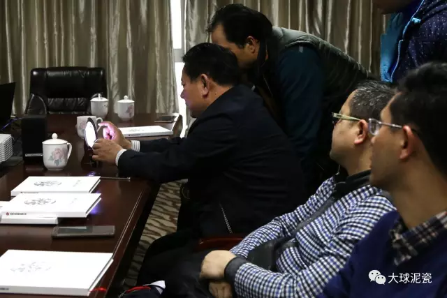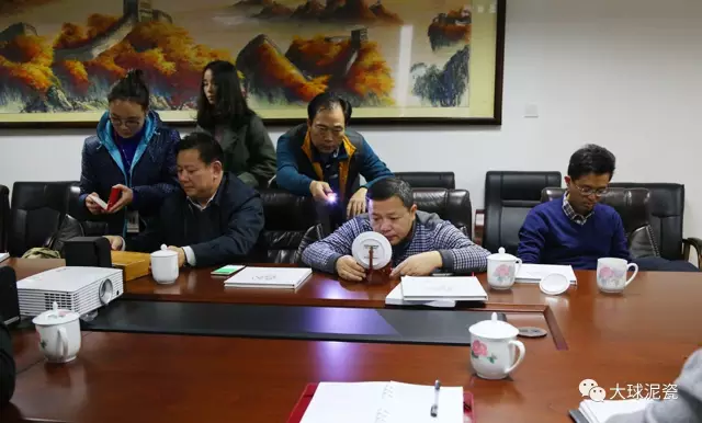 鄢副廳長(zhǎng)一行風(fēng)塵仆仆,興致勃勃,直接來(lái)到大球泥瓷展廳,仔細(xì)聽取了公司副總經(jīng)理張萍對(duì)大球泥原料的形成、發(fā)現(xiàn)、存量以及大球泥瓷各種器型、工藝、畫面特點(diǎn)的介紹,重點(diǎn)對(duì)近兩年來(lái)公司開發(fā)出的經(jīng)典瓷雕作品逐一進(jìn)行了解。在座談會(huì)上,公司董事長(zhǎng)滕召華從大球泥原料的搶救性保護(hù)、公司的成立、研發(fā)利用、知識(shí)產(chǎn)權(quán)保護(hù)、宣傳推廣、慈善文化以及嘗試開拓國(guó)際市場(chǎng),打造中國(guó)藝術(shù)陶瓷品牌等幾個(gè)方面做了詳實(shí)匯報(bào)。