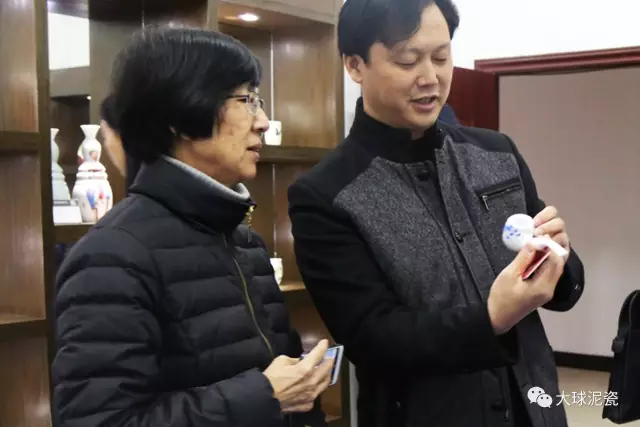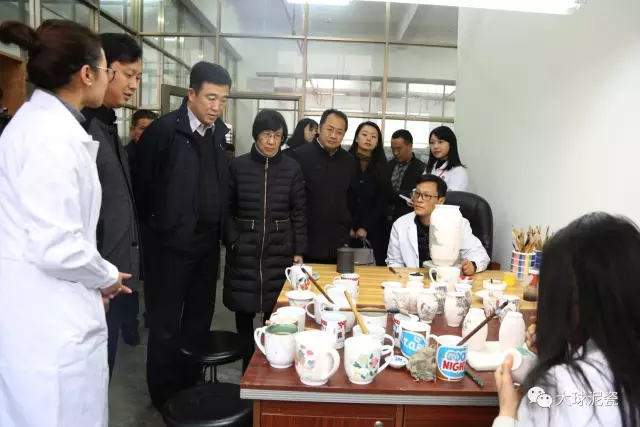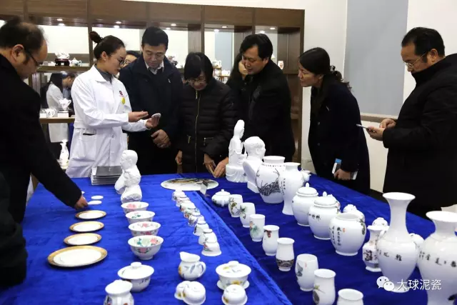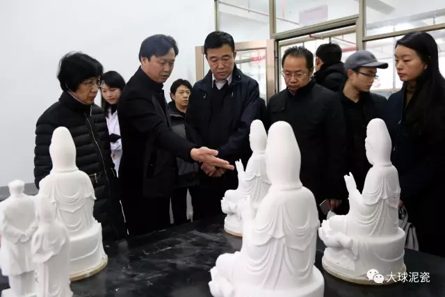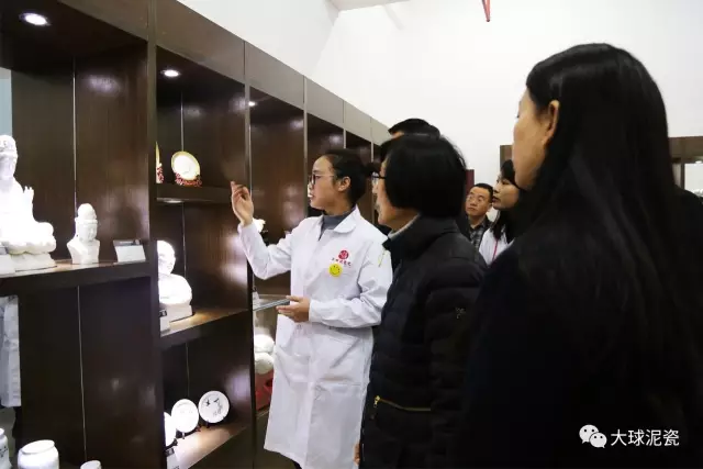 耿焱教授一行受到公司董事長滕召華的熱情歡迎,先后隨引一一參觀了大球泥瓷大師原創(chuàng)工作室、瓷雕創(chuàng)作室、大球泥煉制區(qū)、質(zhì)量檢驗(yàn)區(qū)、精品展廳等,并詳細(xì)了解了公司的特色原料及研發(fā)、創(chuàng)作情況。