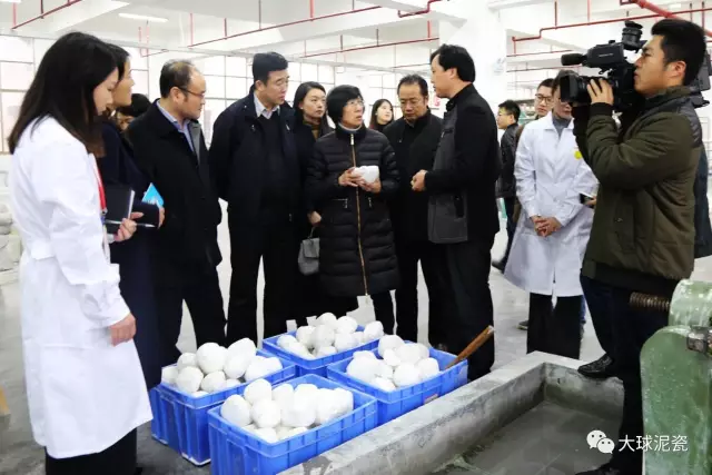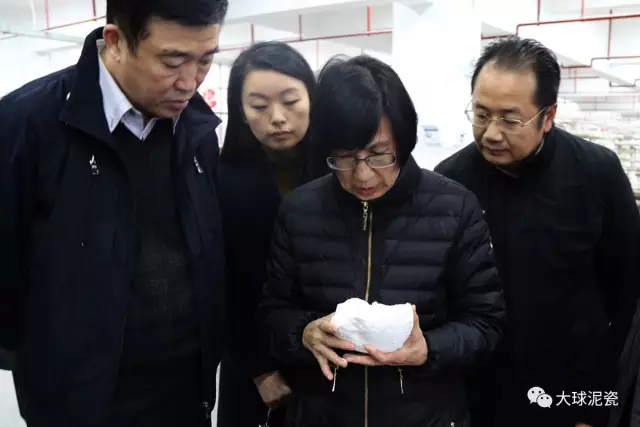 在大球泥原料煉制區(qū),耿焱教授一行被眼前雪白球狀的原料深深吸引住了。“大球泥是非常珍稀的礦產(chǎn)資源,這種礦石每個中心都有一個內(nèi)核,雜質(zhì)聚集中間,需要去掉內(nèi)核方能制瓷”,董事長滕召華一邊介紹一邊砸開一坨雪白的大球泥,將露出的內(nèi)核展示給大家看。