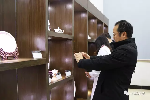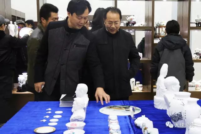 精品展廳內(nèi),聶方紅部長對精細(xì)雅致、潤白通透的大球泥瓷嘖嘖稱贊,并拿出相機(jī)拍下眾多美輪美奐的作品。