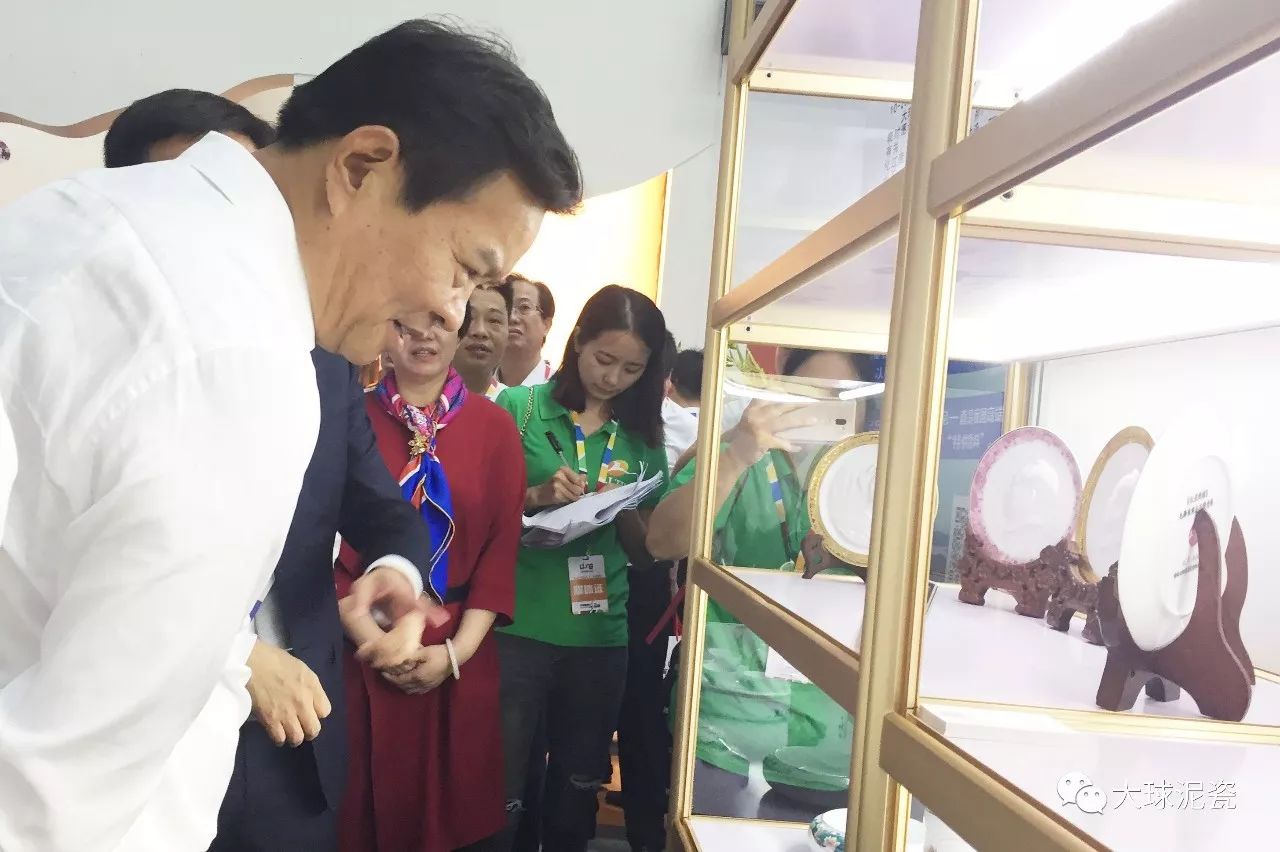 湖南省副省長何報翔,株洲市委書記、市人大主任毛騰飛,株洲市委副書記、市長陽衛(wèi)國,醴陵市委書記胡湘之,市長康月林,市政協(xié)主席江曙明等領導,以及全國人大代表、著名企業(yè)家華澤集團董事長吳向東一行人到大球泥瓷展區(qū)參觀,對大球泥瓷溫潤如玉的瓷質和精湛入神的瓷雕贊嘆不已。