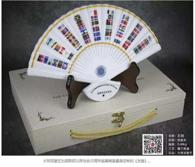 大球泥瓷藝董事長滕召華表示:“此次的《友扇》、《牽手杯》作品能受到那么多外國大使及夫人們的青睞,一是說明我們的設計理念符合當下的構建人類命運共同體大趨勢;二是說明我們的產品造型制作十分優(yōu)良;三是說明國外友人都非常熱愛發(fā)展的中國、喜歡中國的瓷器”。