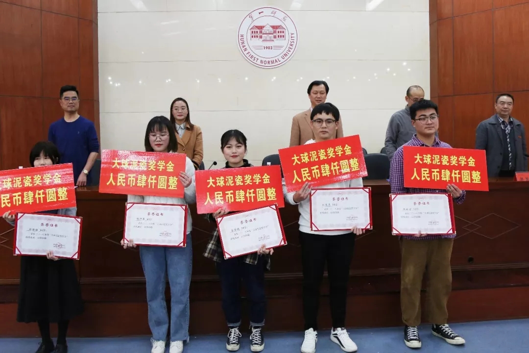 春暖花開,草長鶯飛。2019年3月19號(hào)下午,湖南第一師范“大球泥瓷獎(jiǎng)學(xué)金”頒獎(jiǎng)典禮在特立樓視頻會(huì)議室舉行。大球泥瓷藝董事長滕召華、常務(wù)副總張萍、營銷總監(jiān)徐亞美及部門經(jīng)理出席,第一師范美術(shù)與設(shè)計(jì)學(xué)院院長范迎春、書記蘇美華率領(lǐng)兩百余名學(xué)生出席了頒獎(jiǎng)儀式。