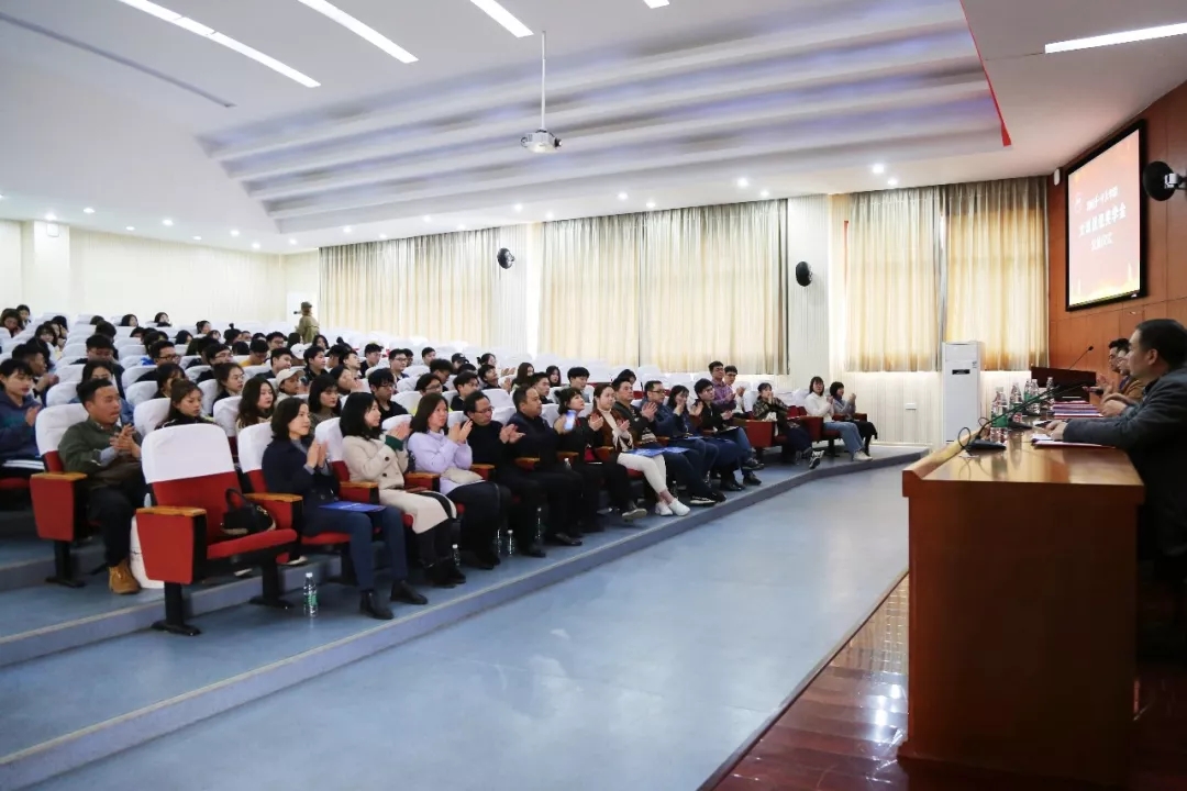 莊嚴(yán)的國歌拉開了頒獎(jiǎng)典禮的序幕。“愛心寄學(xué)子,濃情滿校園”,范迎春院長代表學(xué)校致辭,由衷地感謝大球泥瓷藝的愛心之舉,在兩年前捐贈(zèng)首批10萬元人民幣設(shè)立的專項(xiàng)獎(jiǎng)學(xué)金,贊譽(yù)了滕董是一個(gè)有責(zé)任、有擔(dān)當(dāng)、有大愛的企業(yè)家。他說:“滕董對(duì)毛主席母校的深切關(guān)愛,對(duì)莘莘學(xué)子的殷切期望令人感動(dòng),學(xué)校也將不負(fù)期望,為社會(huì)培養(yǎng)輸送更多優(yōu)秀人才!