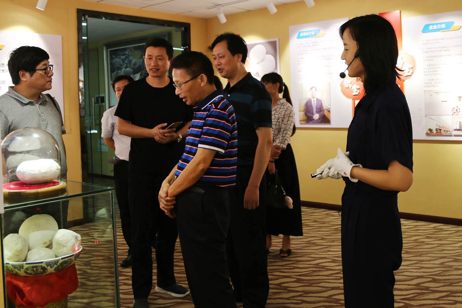 在滕召華董事長的陪同下,考察團(tuán)一行首先參觀了大球泥瓷藝的企業(yè)文化展廳,營銷總監(jiān)徐亞美做了全程講解。大家認(rèn)真聽取了公司簡介與發(fā)展歷程、原料保護(hù)與系統(tǒng)研發(fā)、生產(chǎn)設(shè)計與市場定位、團(tuán)隊建設(shè)與發(fā)展愿景等情況的詳細(xì)介紹。專家們都是來自瓷都江西,對高嶺土可以說見怪不怪,但看到大球泥后,卻是大開眼界,十分好奇,不斷探詢形成原因、所有儲量、品質(zhì)結(jié)構(gòu)等。