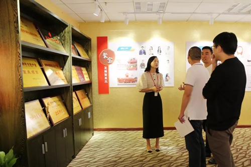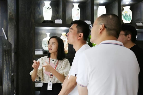 湯總一行首先參觀了公司企業(yè)文化展廳和產(chǎn)品展示廳,營銷總監(jiān)徐亞美作了全程講解。湯總一行對大球泥原料這一核心競爭力表現(xiàn)出濃厚的興趣,認(rèn)為大球泥精典作品出彩,文化價(jià)值和藝術(shù)價(jià)值非凡,單論白色瓷質(zhì)的高貴瑩潤,就已是精品,其工藝水平更是高超。