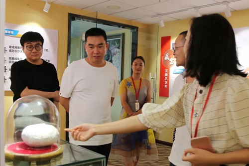 8月8日上午,湖南國際頻道常務(wù)副總監(jiān)(主持工作)湯集安、副總監(jiān)劉輝、總監(jiān)助理任帥等一行到大球泥瓷藝考察指導(dǎo),董事長滕召華、常務(wù)副總張萍等陪同考察座談。