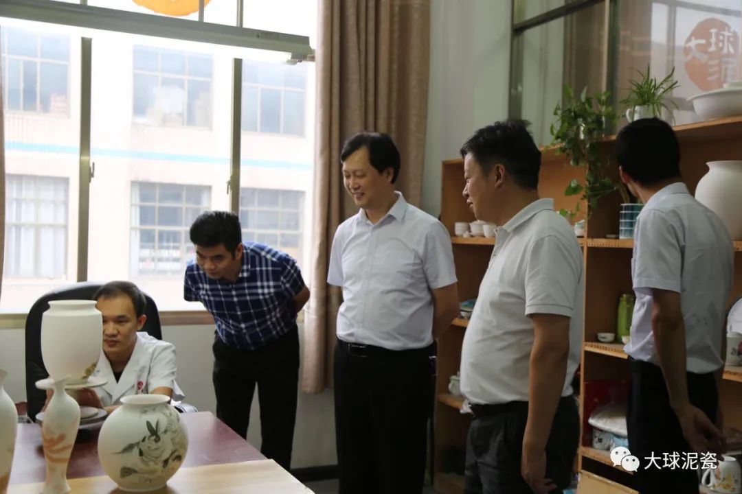 總公司董事長(zhǎng)滕召華、副總經(jīng)理姚衛(wèi)陪同參觀了生產(chǎn)車間。從彩繪創(chuàng)作室到雕刻工作室,從配方練泥區(qū)到制模成型區(qū),從拉坯修型崗到洗水噴釉崗,從裝窯燒窯位到檢瓷入庫(kù)位,聶局一行認(rèn)真觀瞻陶瓷制作的各道工序,仔細(xì)聽(tīng)取每個(gè)工匠講解的技術(shù)要領(lǐng),收獲頗豐。
