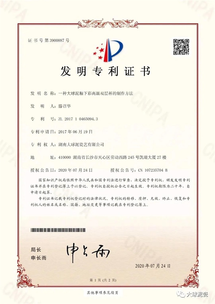 公司作為我國高端藝術(shù)陶瓷引領(lǐng)者,在陶瓷材料研發(fā)、工藝技術(shù)改革、作品融合創(chuàng)新、制訂行業(yè)標(biāo)準(zhǔn)等方面一直在努力,也非常注重知識(shí)產(chǎn)權(quán)的維護(hù),營造行業(yè)良好的市場(chǎng)環(huán)境。2020年醴陵某藝術(shù)瓷公司被判賠我公司25萬余元,另外一家陶瓷公司的侵權(quán)行為公司正在維權(quán)。
