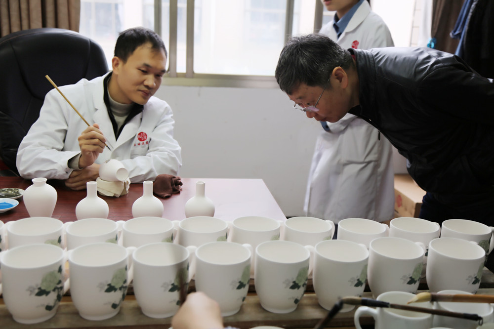 走基層,贊工藝。在工廠一線,謝組長現(xiàn)場了解大球泥瓷藝的生產(chǎn)研發(fā)情況。醴陵工廠總經(jīng)理馬禮對整個生產(chǎn)工藝做了詳細講解。當領(lǐng)導們看到幾位大師聚精會神在一筆一繪進行創(chuàng)作時,紛紛感嘆其工匠精神。大國工匠,一筆一劃皆是天下。