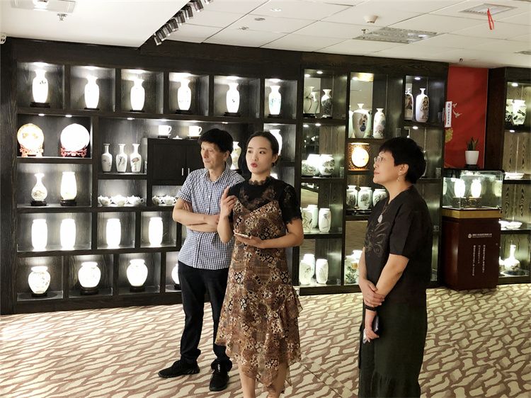 9月12日下午,湖南省商務廳黨組副書記譚平到大球泥瓷藝調(diào)研。隨行的還有民進湖南省委副主委、省文聯(lián)副主席湯素蘭,湖南油畫學會主席、湖南師范大學教授段江華、湖南工商大學教授趙持平、長沙大學教授嚴明等藝術家。