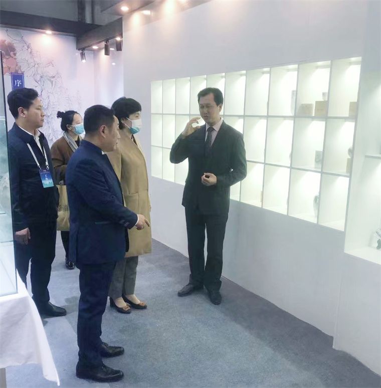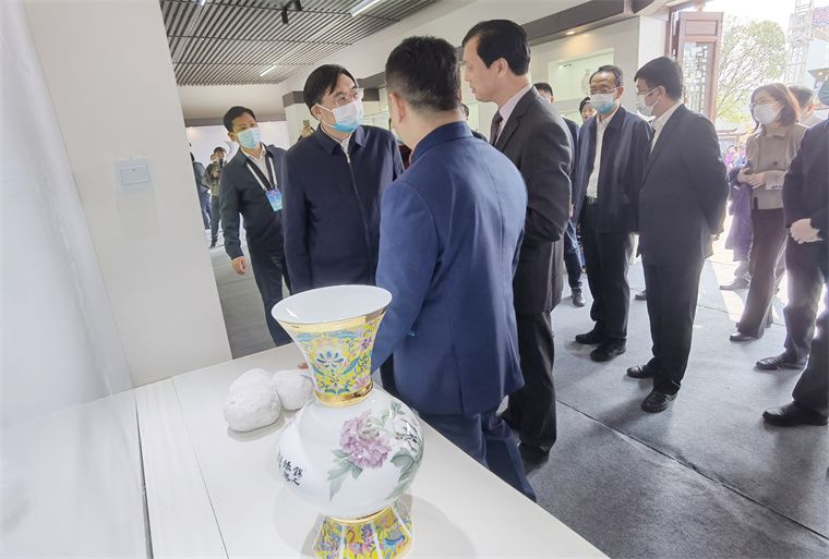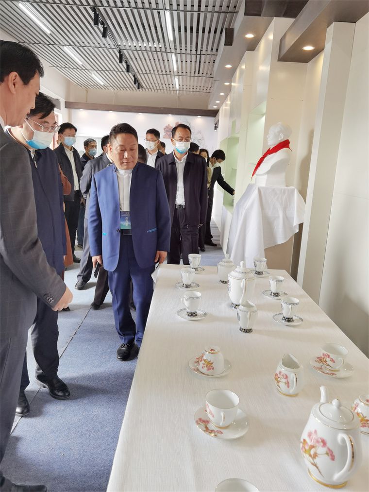 國家文化和旅游部部長胡和平一行到湘瓷館巡展,董事長滕召華介紹了湖南陶瓷的發(fā)展歷程及獨有特色,講解了“毛瓷”制作技術及稀缺大球泥原料,匯報了非遺傳承及融合創(chuàng)新取得成就。胡部長認為釉下五彩瓷色彩清新、畫面豐富,贊譽大球泥瓷設計新穎、白潤通透,指示湖南陶瓷要傳承融合、守正創(chuàng)新。