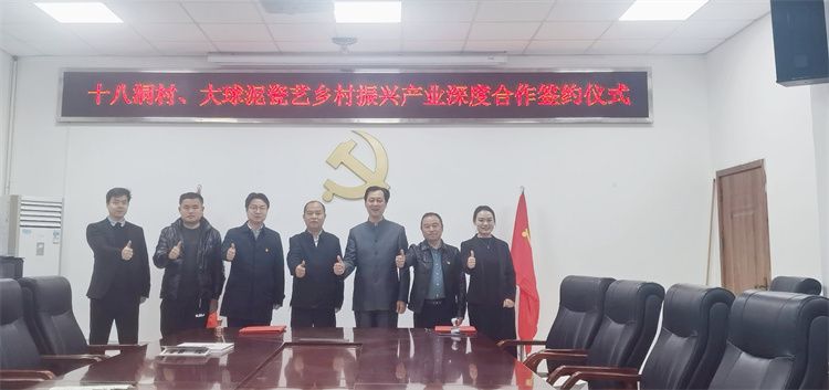 3月17日上午,大球泥瓷藝與十八洞村就鄉(xiāng)村振興產(chǎn)業(yè)深度合作在花垣縣十八洞村部簽約。 第二十屆中央候補(bǔ)委員、花垣縣雙龍鎮(zhèn)副鎮(zhèn)長(zhǎng)、十八洞村黨支部書記施金通,十八洞村駐村第一書記、鄉(xiāng)村振興工作隊(duì)隊(duì)長(zhǎng)田曉,十八洞村經(jīng)濟(jì)合作社理事長(zhǎng)龍書優(yōu),公司董事長(zhǎng)滕召華、副總經(jīng)理姚衛(wèi)、銷售經(jīng)理吳大樑等出席簽約儀式。