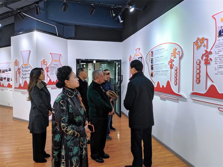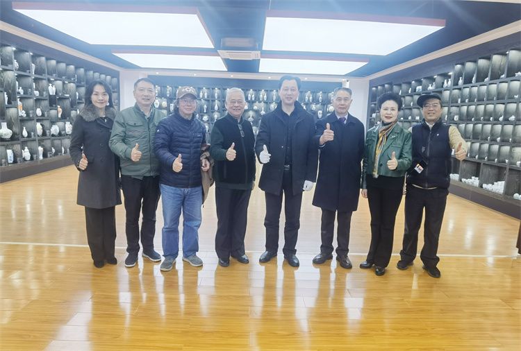 在董事長(zhǎng)滕召華引領(lǐng)下, 袁大使一行參觀了企業(yè)文化展廳,從“藏寶——鑒寶——識(shí)寶——煉寶——鑄寶”等方向作了言簡(jiǎn)意賅介紹。袁大使對(duì)于滕董守正創(chuàng)新、敢為人先,做“大球泥瓷”標(biāo)準(zhǔn)表示贊賞,對(duì)公司將傳統(tǒng)藝術(shù)陶瓷創(chuàng)新融入北京地鐵公共藝術(shù)工程相當(dāng)認(rèn)可。