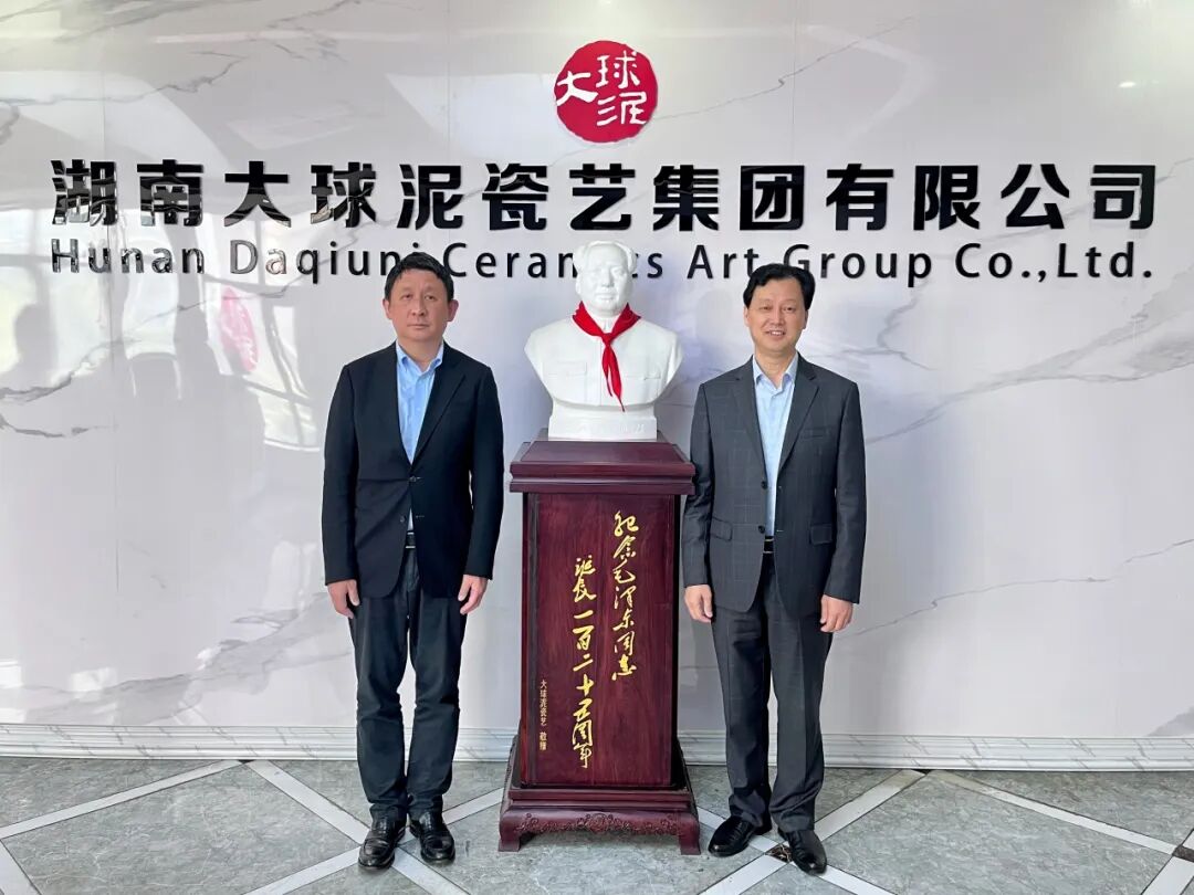 一坨泥,承載千年文明;一窯火,淬煉文化自信;一份情,賡續(xù)紅色血脈。此次洽談,以滕董贈送一坨大球泥原料給王先生而結(jié)束。雙方將借大球泥稀缺性之基,融紅色文化之魂,為湖湘藝術(shù)陶瓷發(fā)展注能,為中華傳統(tǒng)技藝創(chuàng)新發(fā)力。