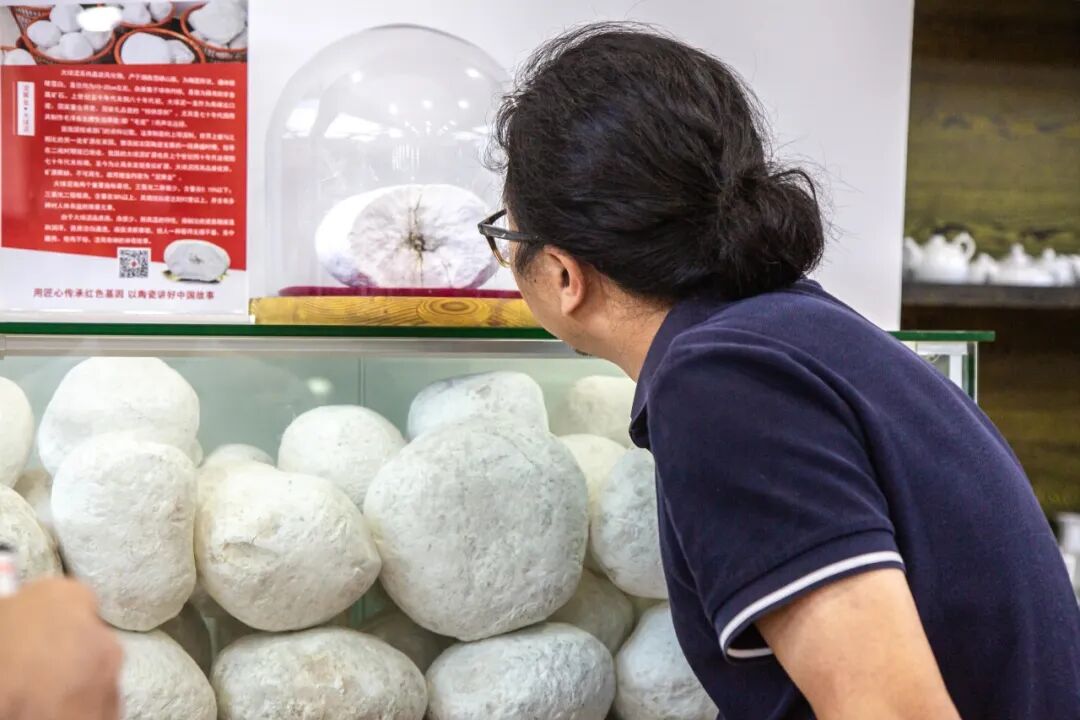 面對罕見的大球泥原礦雪白球形體,聶華軍好奇探問:“這球形就是原料最初的樣子嗎?” “球體中間的核是什么?”對珍稀材料的天然形態(tài)充滿興趣。
