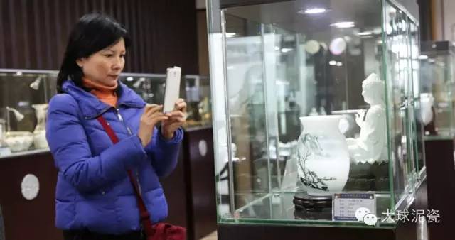 王主任首先參觀了大球泥瓷藝的精品展示廳,第一次見(jiàn)到大球泥瓷廬山真面目的王主任一走進(jìn)展廳,便被眾多光彩熠熠的作品吸引住了目光。她一邊仔細(xì)地觀賞每一件作品,一邊拿起手機(jī)興致勃勃地拍照,說(shuō)要把這么精美的瓷器發(fā)到朋友圈和好友們一起分享。