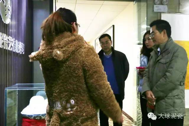 在公司張副總的帶領下,唐主任和劉董首先參觀了大球泥瓷精品展示廳。第一次見到大球泥瓷的劉董瞬間被激發(fā)起了強烈的好奇心,一邊認真地觀賞瓷器,一邊仔細地詢問著關于大球泥原料的研究開發(fā),大球泥瓷的燒制工藝和公司未來的發(fā)展規(guī)劃等問題。