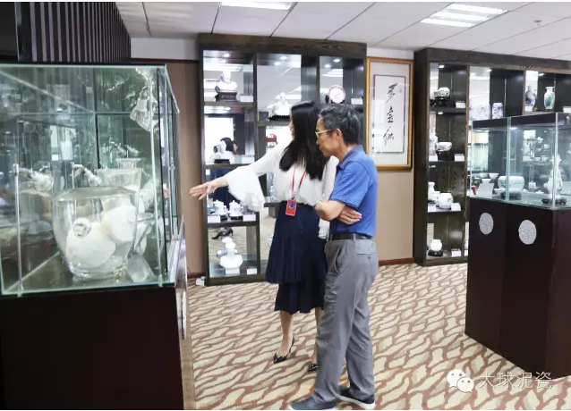 戴理事長一邊認真品鑒展廳里的精美大球泥瓷作品,一邊笑著對陪同參觀的工作人員說:“我雖然是第一次來大球泥瓷藝,但是對大球泥印象很深,這種泥料好珍稀的,還造就了舉世聞名的毛瓷,眼前這些大球泥瓷作品都很雅致,做得不錯,說明你們公司在生產(chǎn)研發(fā)上,那是真下了深功夫啊!”