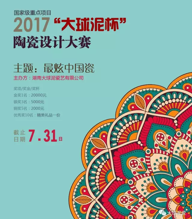 獲獎的設(shè)計作品將由湖南大球泥瓷藝有限公司頒發(fā)榮譽(yù)證書、獎杯、獎金。
