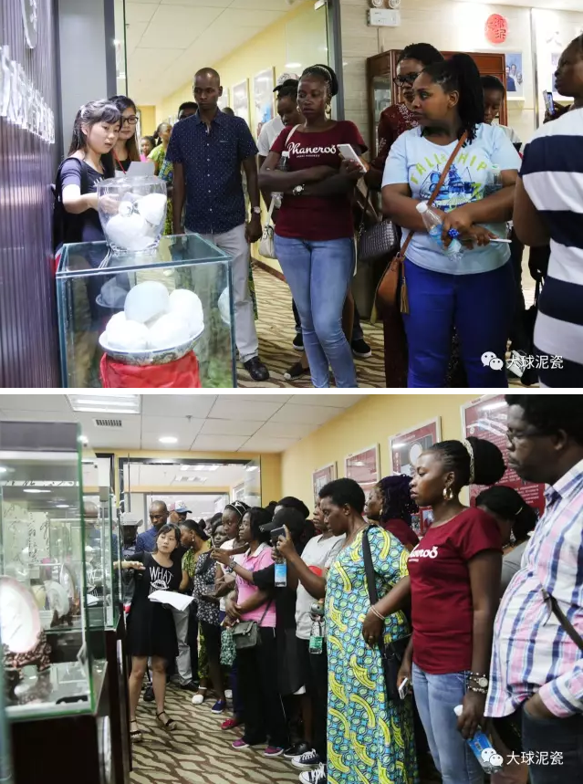 學(xué)員們對(duì)大球泥非常感興趣,對(duì)溫潤(rùn)如玉的大球泥瓷更是稱(chēng)贊不已,并表示希望這些瓷器能出口到國(guó)外,到他們的國(guó)家去。大家現(xiàn)場(chǎng)紛紛與大球泥瓷拍照留影。