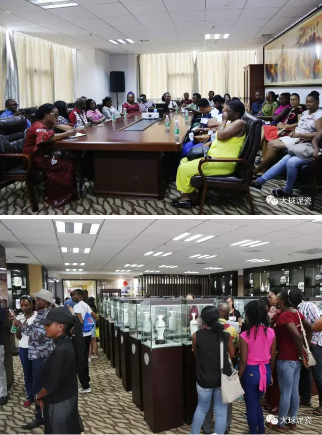 6月20日,大球泥瓷藝迎來(lái)了一批“特殊”的客人, 63名來(lái)自非洲婦女縫紉和刺繡技能培訓(xùn)班的學(xué)員們?cè)谑∩虅?wù)廳相關(guān)人員的陪同下到大球泥瓷藝進(jìn)行參觀交流,學(xué)習(xí)湖湘文化。