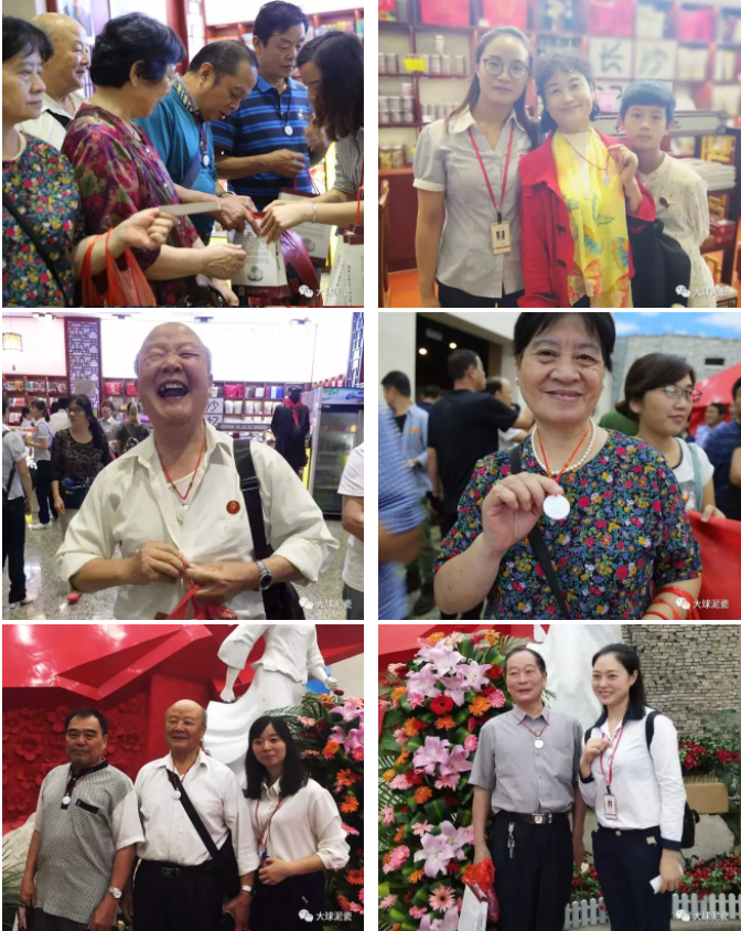由大球泥瓷藝限量發(fā)行的《毛澤東主席浮雕瓷像》徽章,受到了現(xiàn)場老黨員們的無比親睞,精心準(zhǔn)備的幾十余枚小徽章被瞬間請完。老黨員們紛紛現(xiàn)場佩戴,并主動要求與大球泥瓷藝團(tuán)隊成員集體合影留念!并大贊佩戴的高溫大球泥《毛澤東主席浮雕瓷像》徽章工藝精良,制作精美,栩栩如生。