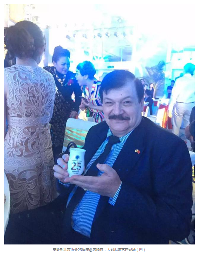 6月9日晚,英聯(lián)邦北京協(xié)會(huì)25周年慈善晚宴在中國(guó)大飯店舉行。英聯(lián)邦成員國(guó)駐華大使及夫人、國(guó)際友人及愛心企業(yè)共600余人參加,大球泥瓷藝董事長(zhǎng)滕召華受邀出席。