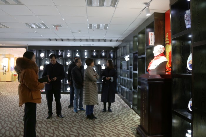 銷售總監(jiān)姚衛(wèi)為郭部長一行作了展廳講解,詳細(xì)介紹了大球泥原料、企業(yè)文化、發(fā)展歷程、業(yè)務(wù)拓展等。在參觀過程中,郭部長對大球泥瓷藝術(shù)作品及藝術(shù)價值給予了高度評價。