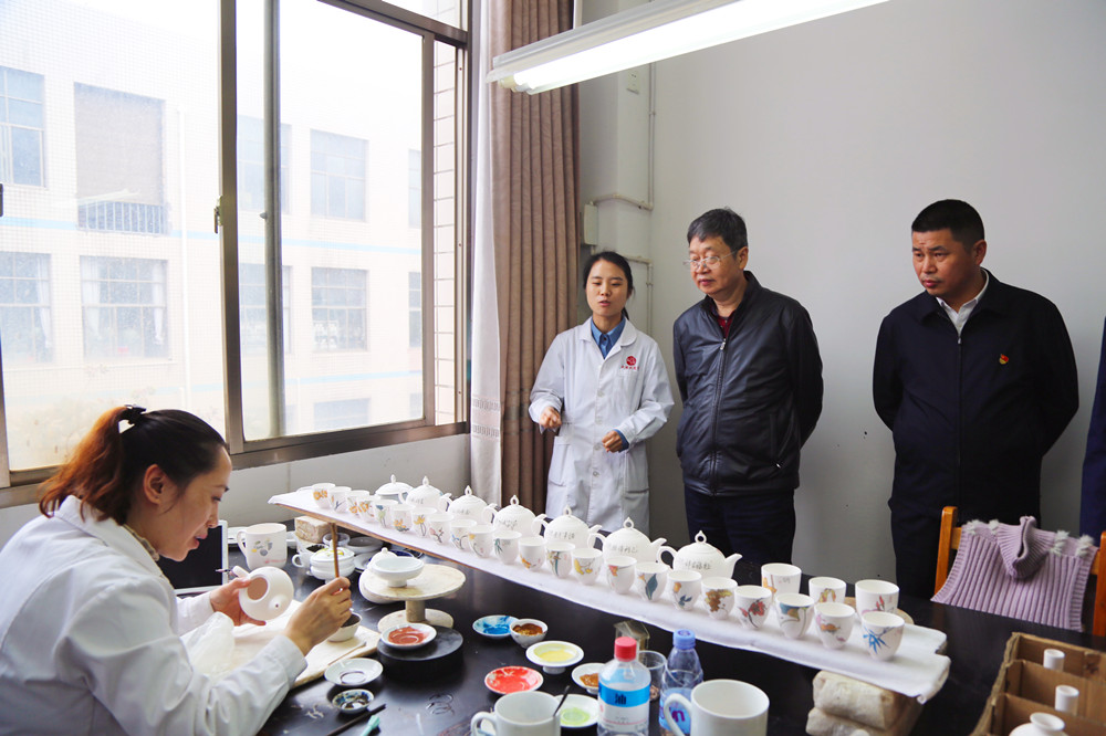走基層,贊工藝。在工廠一線,謝組長現(xiàn)場了解大球泥瓷藝的生產(chǎn)研發(fā)情況。醴陵工廠總經(jīng)理馬禮對整個(gè)生產(chǎn)工藝做了詳細(xì)講解。當(dāng)領(lǐng)導(dǎo)們看到幾位大師聚精會神在一筆一繪進(jìn)行創(chuàng)作時(shí),紛紛感嘆其工匠精神。大國工匠,一筆一劃皆是天下。