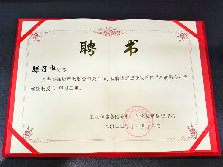 近期,由工業(yè)和信息化部中小企業(yè)發(fā)展促進(jìn)中心選聘的“產(chǎn)教融合產(chǎn)業(yè)實(shí)踐教授(第一批)入庫(kù)人員”名單正式公布,公司董事長(zhǎng)滕召華獲聘教授,這是新年收到了第一個(gè)證書(shū)。