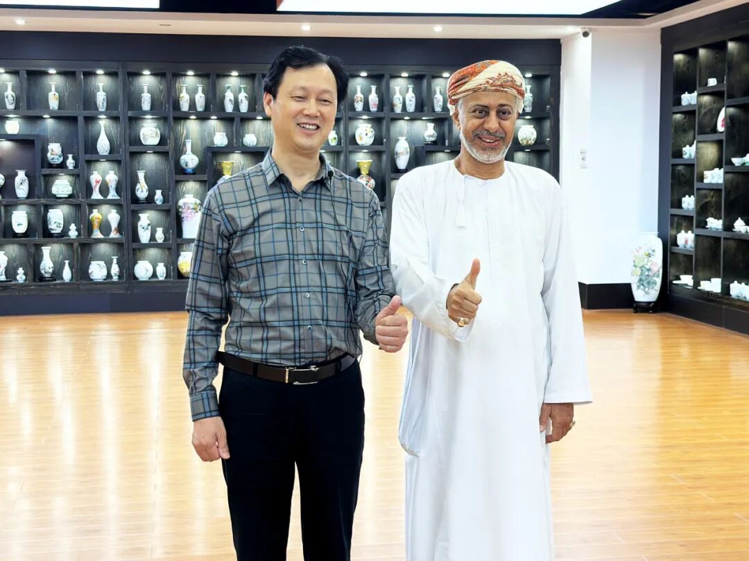 在國禮贈送現(xiàn)場,阿曼蘇丹國薩馬爾親王被這套獨(dú)具匠心的咖啡具深深打動(dòng),當(dāng)即表達(dá)想要與大球泥集團(tuán)定制一系列皇室專用瓷器,會議后就定制的具體事宜展開了細(xì)致討論,也預(yù)示著雙方在瓷器領(lǐng)域開啟了新的合作篇章。
